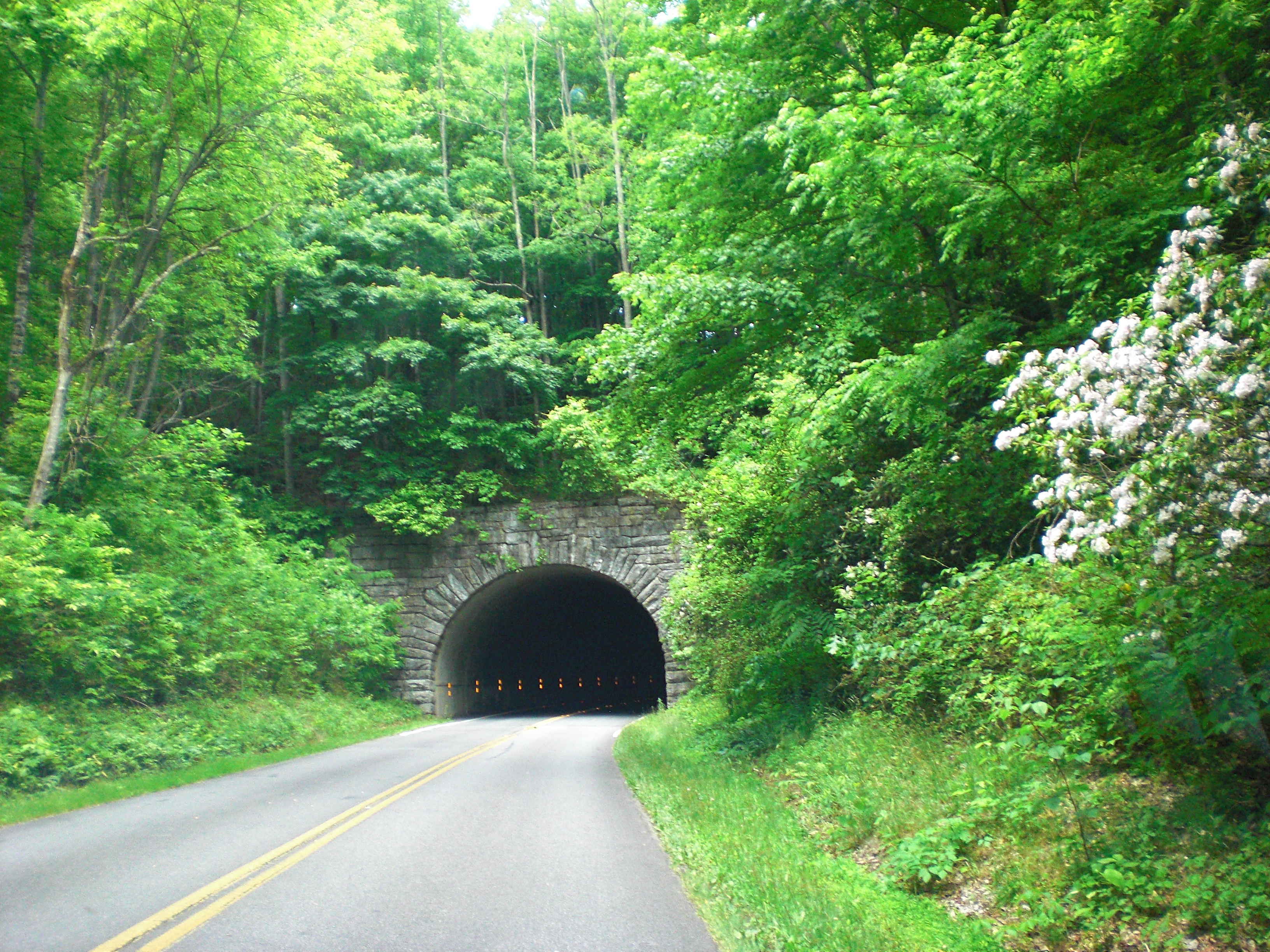 The parkway passes through 26 tunnels, which, along with bridges and culverts, are faced with native stone in keeping with the original vision that parkway structures harmonize with the natural environment. Experiencing the tunnels, and noting that the current condition of the roadway is excellent, we thought about its construction.