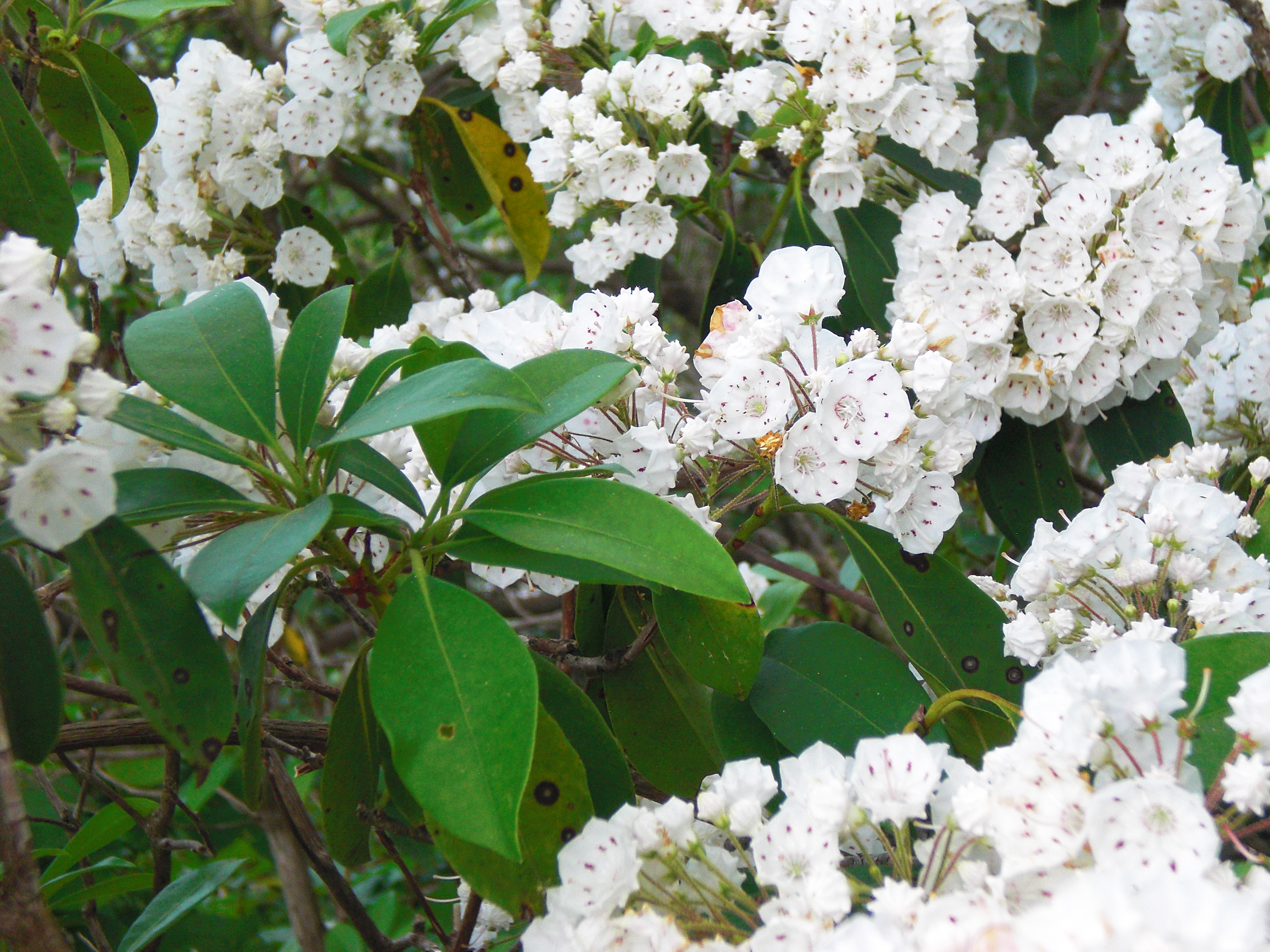 Throughout the day we passed numerous, huge, colorful expanses of purple rhododendron, orange flame azalea and pink mountain laurel and saw wild turkeys, deer and foxes. (Two foxes scampered across the road actually at a place identified on the map as Fox Hunters Paradise, close to the North Carolina – Virginia state line.)