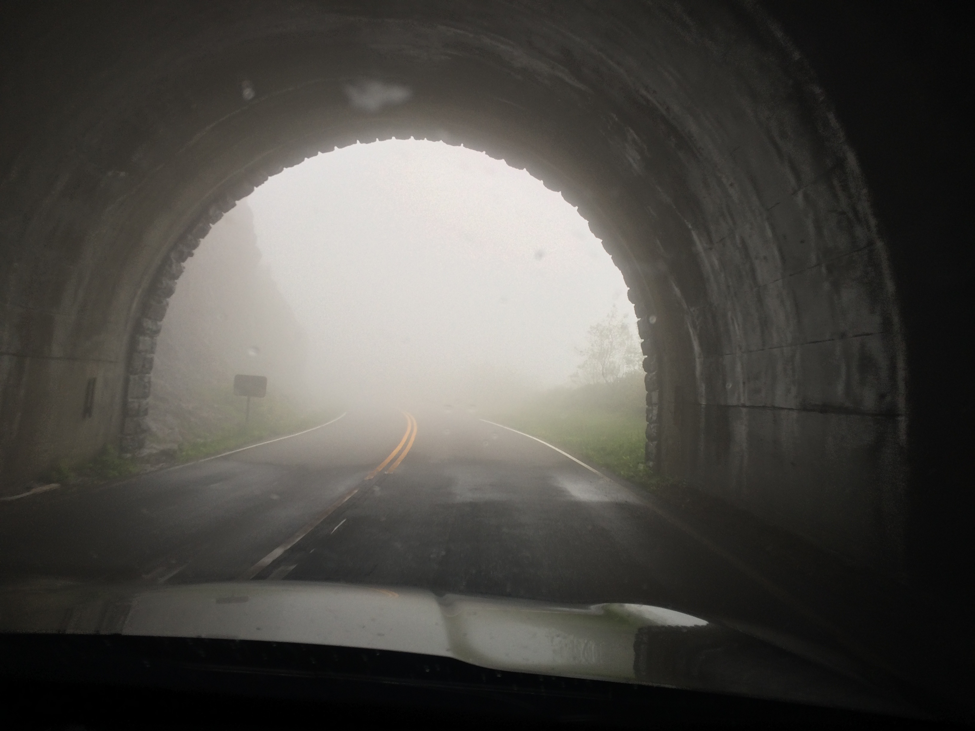 The southern portion of the parkway is truly a mountain driving experience, with sharp turns, steep grades and rapidly changing weather. We went from broken clouds and sunshine to torrential downpours to dense fog in a matter of hours, with the late-May afternoon temperature dropping to 59 degrees in higher elevations.