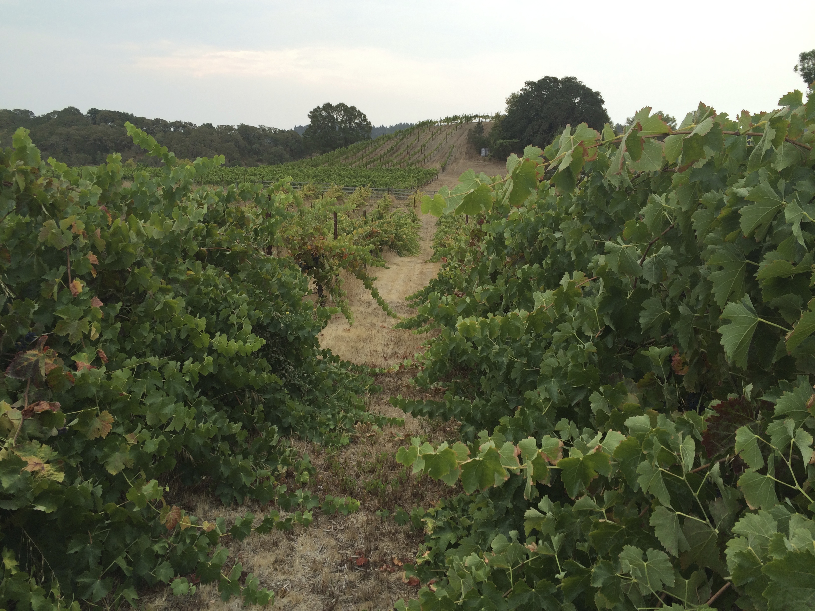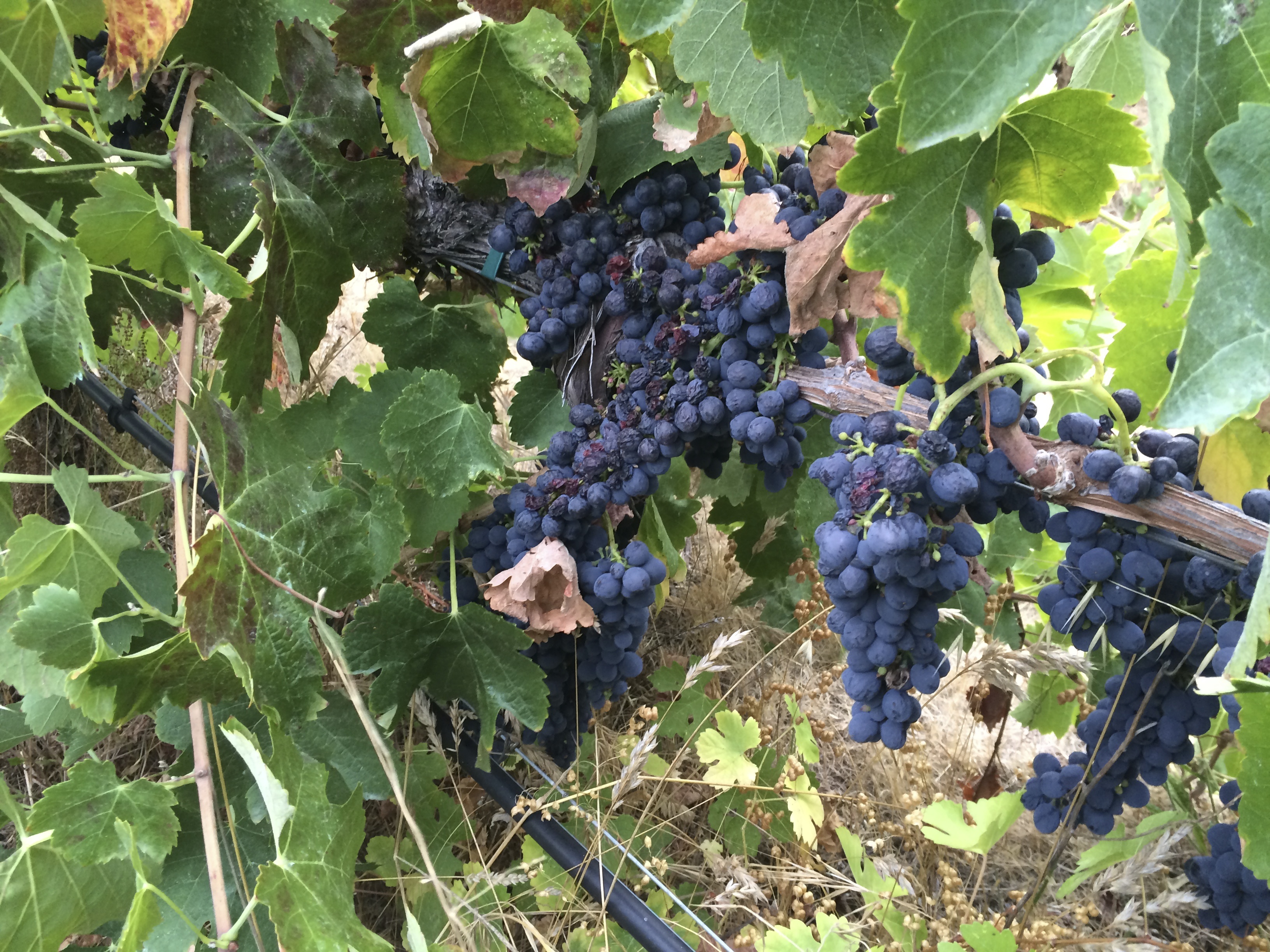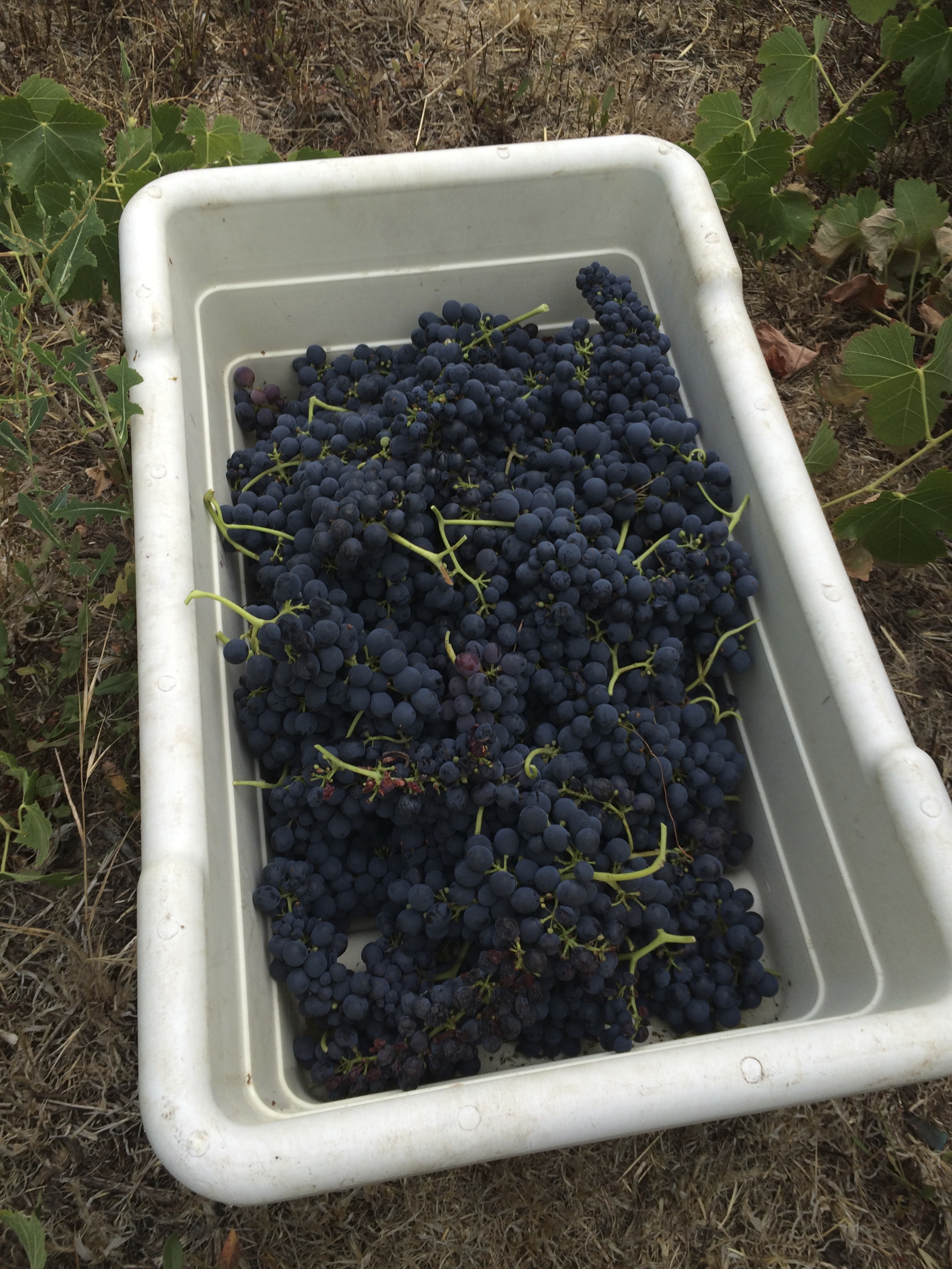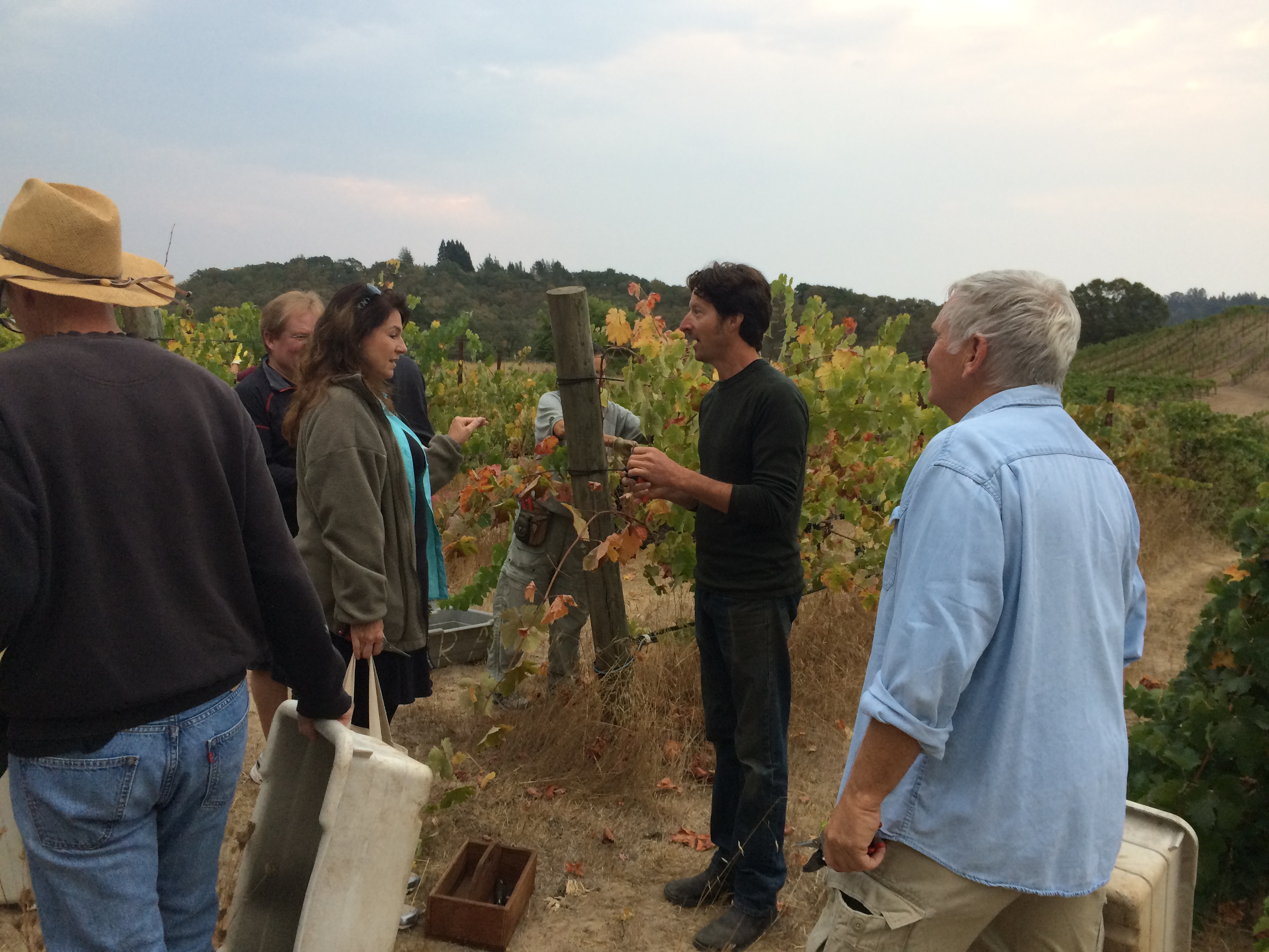 The group complete, we carpooled a few miles east to a Syrah vineyard on a mild slope, the first of two vineyards we would pick that day. Darek briefly explained how to pick the clusters and handed out the picking trays and tools – extremely sharp curved blades for those who were experienced and less threatening small scissor-like clippers for us novices.