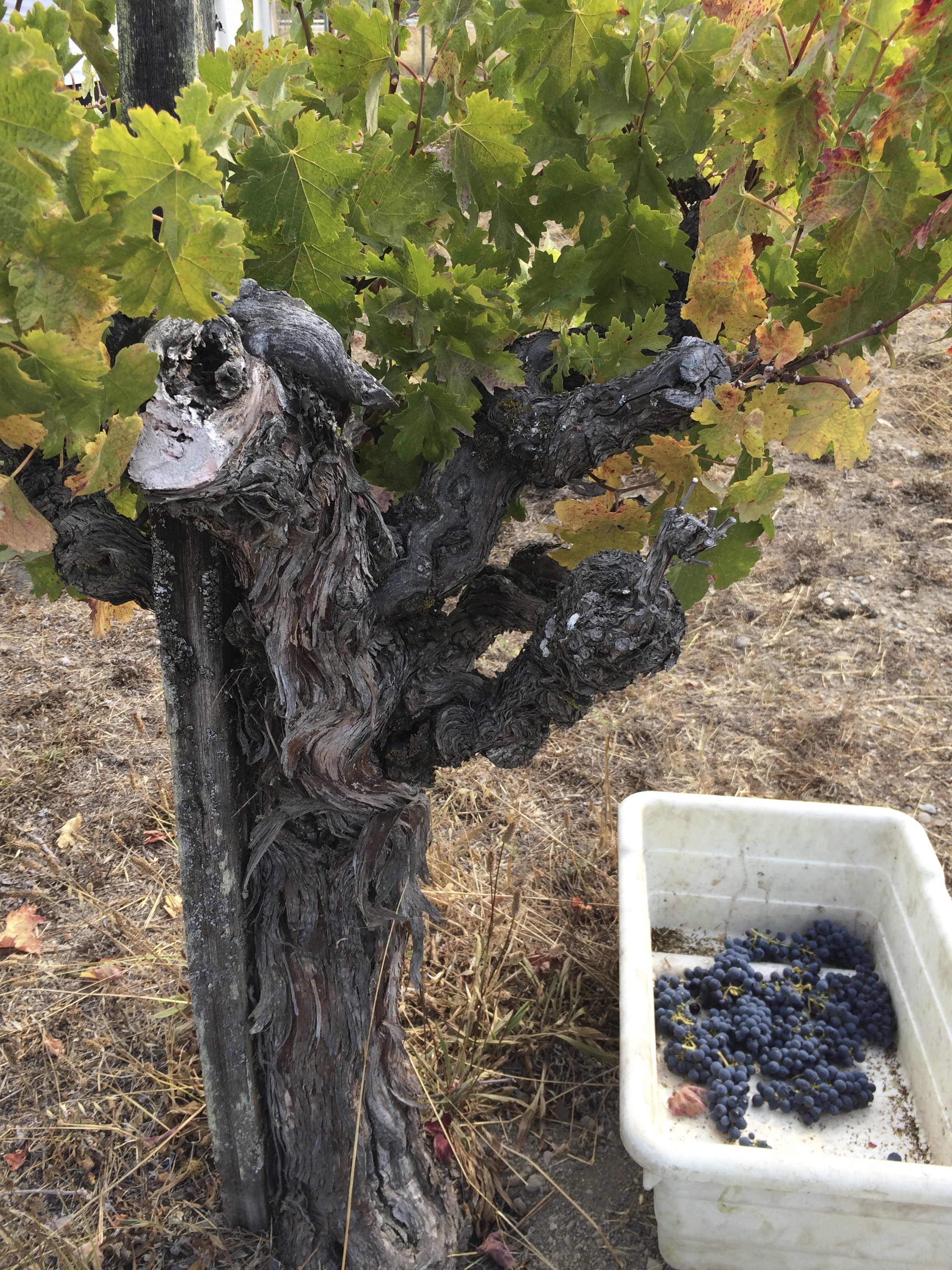 By late morning, we’d completed that vineyard, and after a water and snack break in the growing heat of the day, we carpooled to the other, much smaller vineyard of hundred-year-old-plus Abouriou grapes. The process was the same and the group finished that vineyard in much less time.