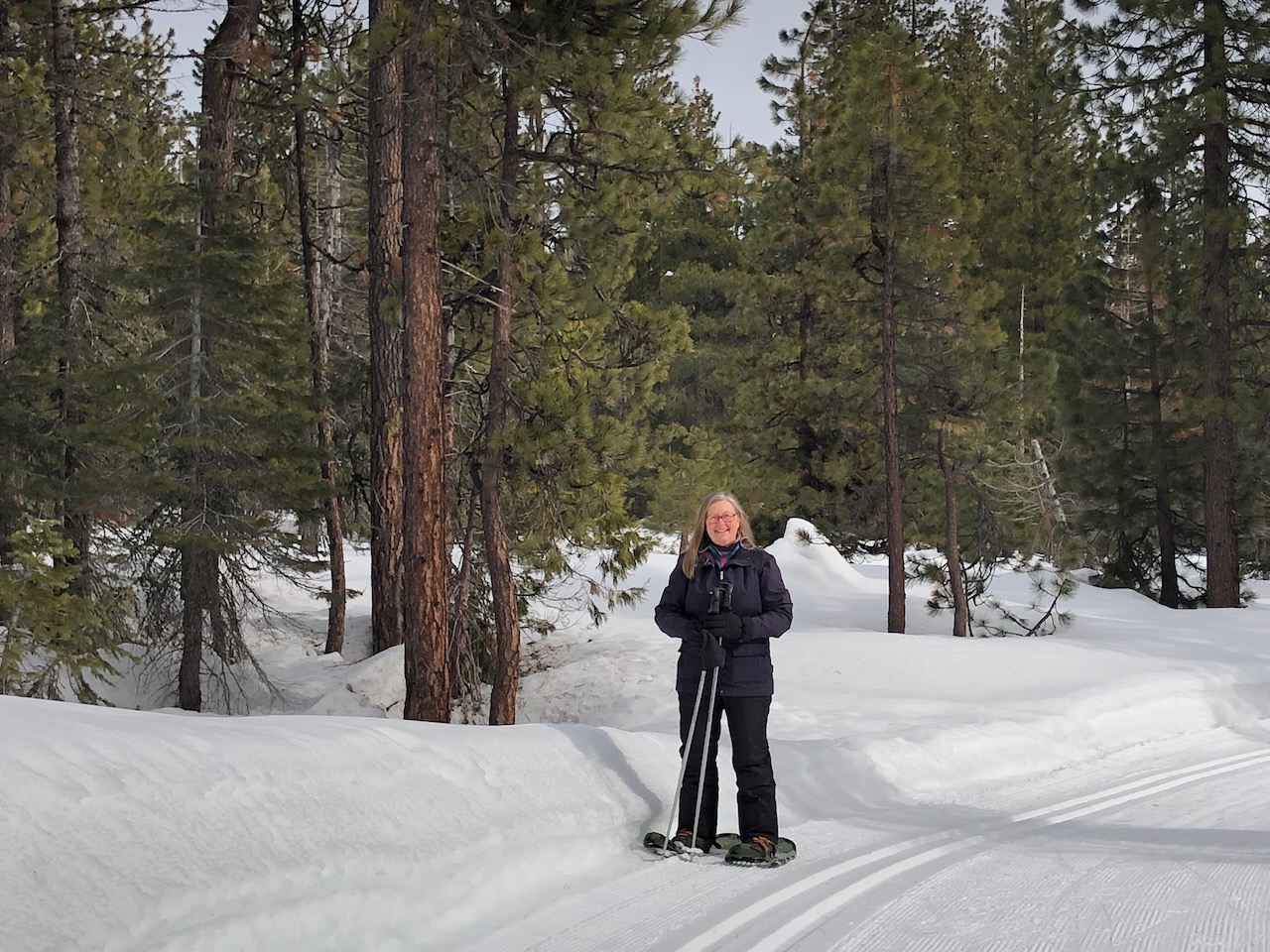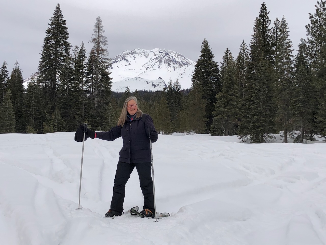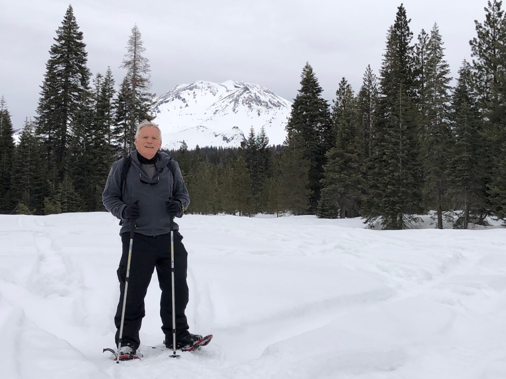 When we decided to take a quick snowshoeing trip to the Mt. Shasta Nordic Center in northern California, my husband and I were fortunate that the dates we chose in mid-February coincided with a short break in the snowy, stormy weather that’s been so relentless this winter. The roads were clear and there was plenty of snow from prior storms, but no new snowfall. Although we’d done a couple of prior outings with snowshoes, it had been several years, and we appreciated the good conditions for this one.