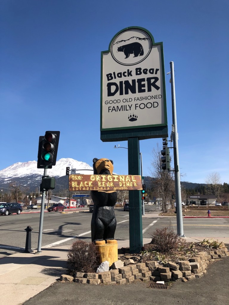 The Black Bear Diner in Mt. Shasta is the original location of that restaurant chain, and serves huge, hearty meals.