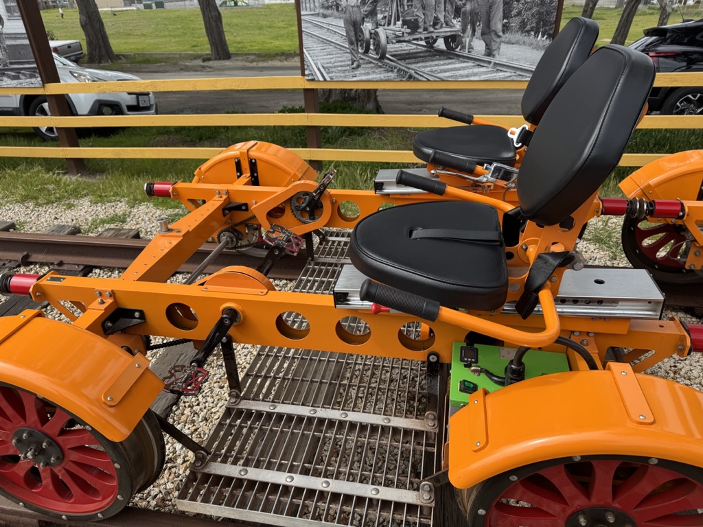 Handcar Tours, https://handcar.com/the-experience/ as the tour enterprise of the Museum of Handcar Technology LLC, operates guided excursions along a section of historic railroad, with participants choosing either a rail bicycle or an arm-pumped handcar. Both are electric-assisted, making the journey much easier.